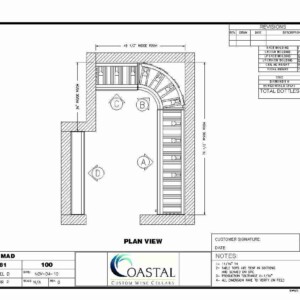 Our client originally just wanted to use some kits from our semi-custom wine rack series, which we offer at 6, 7 and 8 foot heights. But he also had some features that he wanted to include in the wine room to enhance it, if you will. You’ll see what I mean here in just a moment. Elevation A, B, C and D, we’ll take at look at individually.