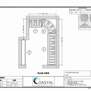 Our client originally just wanted to use some kits from our semi-custom wine rack series, which we offer at 6, 7 and 8 foot heights. But he also had some features that he wanted to include in the wine room to enhance it, if you will. You’ll see what I mean here in just a moment. Elevation A, B, C and D, we’ll take at look at individually.