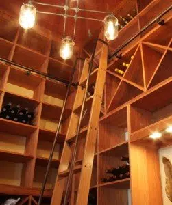 Library Style Rolling Ladders for Custom Wine Cellar Designs