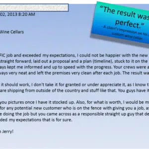 What the Client Said – Custom Residential Wine Cellar – Delaware