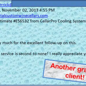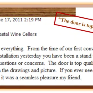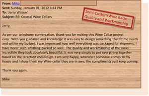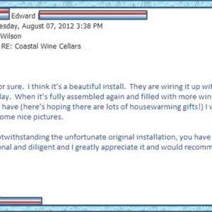 A Client Grateful for the Excellent Customer Service by Coastal Custom Wine Cellars