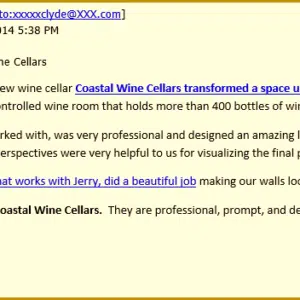 A Client Recommends Coastal Custom Wine Cellars for a Job Well Done